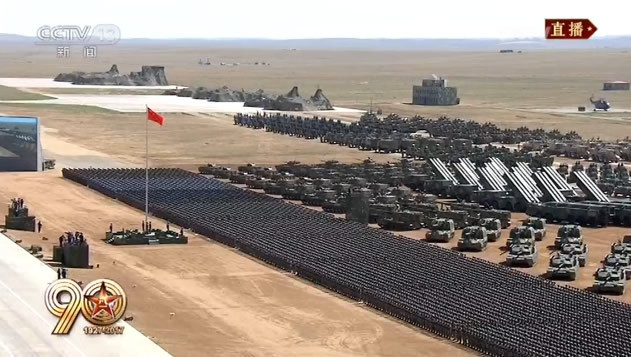 7月30日上午9时,在朱日和训练基地举行庆祝中国人民解放军建军90周年阅兵,中共中央总书记、国家主席、中央军委主席习近平检阅部队并发表重要讲话。