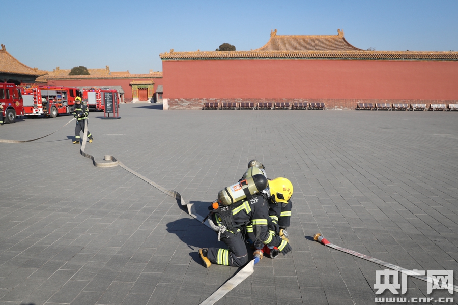 岁末年初的这场演练,在平时也反复进行过多次。天安门地区消防救援支队故宫特勤站站长张肖说,600年的故宫具有极高的历史文化价值,作为世界上最大规模的木质结构宫殿群,它对防火的要求极高。因此,做好消防安全工作至关重要。在他看来,只有平时反复训练,一丝不苟做好检查,才能确保办公区域与宫内商店用电安全,才能在意外发生时快速、高效地处理。