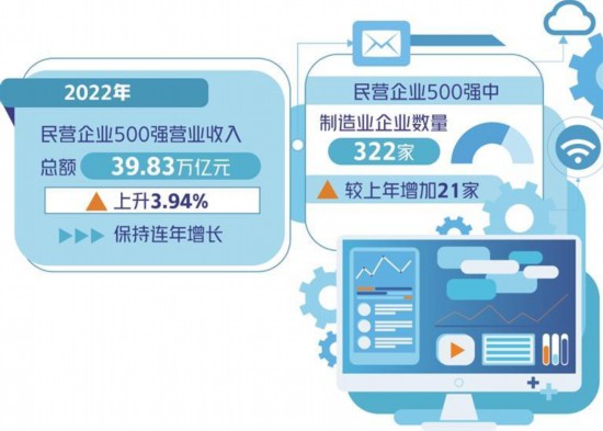 全国工商联日前发布的“2023中国民营企业500强”榜单和《2023中国民营企业500强调研分析报告》显示,民营企业500强入围门槛达275.78亿元,比上年增加12.11亿元。 500强是民营企业的排头兵,其数据变化、排序升降是观察我国民营经济发展的一个窗口。超预期因素冲击之下,500强入围门槛仍创新高,体现出我国民营经济的综合实力、创新活力和市场竞争力稳步提升。 制造业更显韧性 2022年,民营企业500强营业收入总额39.83万亿元,上升3.94%,保持连年增长;资产总额46.31万亿元,止住上一年下降趋势,迎来显著回升;税后净利润、销售净利率等尽管有所下降,但降幅较上一年收窄。 在全球通胀压力持续加大、内外需不足等多重挑战下,民企500强能保持营收总额和资产总额双增长,足显韧性之强。“营收增长一方面是企业奋斗拼搏的结果,另一方面是我国市场仍有足够的机会和份额。不过,成本上升等外部性因素难以在短期内克服,因此利润水平和盈利能力有所回落。”北京市工商联副主席、振兴国际智库理事长李志起说。 值得一提的是,制造业企业继续在民企500强中保持主导地位,数量为322家,较上年增加21家,且营收总额、资产总额、纳税总额、就业人数等指标较上年均出现不同程度上涨。 李志起认为,在全球供应链遭受冲击的情况下,我国生产能力和生产秩序率先恢复,保障了出口增长,带动了民企制造业增长。与此同时,我国坚持把制造业作为全面发展实体经济的重点,延长制造业中小微企业缓税政策,加大制造业中长期贷款支持力度。“制造业获得政策支持的效果是立竿见影的,税费减免、研发费用加计扣除等举措都能使企业直接受益,再加上制造业企业实体资产相对丰厚,也更易获得贷款支持。”李志起说。 山东魏桥创业集团有限公司董事长张波介绍,作为制造业企业,近年来魏桥集团积极布局下游加工,建设魏桥轻量化基地,带动形成新能源轻量化高端装备制造产业集群。 工业是国民经济的主体和增长引擎,在复杂多变的外部环境下,更需要其发挥压舱石作用。“制造业民企数量的增长,显示出我国加快建设制造强国的坚定步伐和巨大动能,特别是重工业制造、装备制造以及现代数字技术智能制造保持较强进取势头。”长江产业经济研究院特聘研究员、中国民营经济研究会理事吴跃农说。 转型升级是趋势 报告显示,2022年,75.2%的民企500强实施转型升级。李志起认为,一方面,民营企业通过转型升级提高在产业链的话语权,在政策的支持引导下主动实施转型升级;另一方面,经济增速放缓、行业产能过剩、国际市场低迷等因素倒逼企业自我加压,改革发展模式。 恒力集团有限公司副总经理陈秋荣表示,恒力深耕研发创新,持续推进产业转型。 作为排头兵,500强的转型实践对于广大民营企业而言,具有示范和借鉴意义。 民企500强转型升级,主要依靠技术和管理创新、发展新业态新模式、提高环保性能等,背后离不开关键技术研发。最近3年,研发人员占员工总数比例超3%和研发经费投入强度超3%的民企500强数量连年增长。“越来越多的民营企业意识到,必须把关键核心技术掌握在自己手里。”李志起表示,企业愈加重视研发投入,表明民营经济正由资源驱动向创新驱动转变。 宁德时代新能源科技股份有限公司在榜单中名次跃升明显,该公司董事长曾毓群表示,宁德时代围绕固定式化石能源替代、移动式化石能源替代和市场应用集成创新三大发展方向,不断攻克动力及储能电池的关键核心技术,主动服务“双碳”战略。 “民营制造企业在创新上大幅投入,智转数改结出硕果,将推动我国经济发展不断提质增效,为经济增长的可持续性提供动力。”吴跃农说。 仍需持续提升信心 受外部环境影响,民企500强成本上升、需求不振的问题仍然存在。 从调研情况看,民企500强海外投资增速出现回落,反映原材料成本较高、用工成本上升、国内市场需求不足的500强企业数量较多。“这些问题难以靠企业自身消化,一些民营企业信心仍然不足。”李志起说。 面对民企发展遇到的困难和挑战,国家支持政策也密集出台。多家500强民企表示,强化民营经济“内在要素”和“自己人”的重要定位体现了民营企业的重要主体作用,在重大规划、重大项目、重大工程、重大活动中积极吸引民营企业参与,有效提振了发展信心。数据显示,近七成民企500强认为融资环境有所改善。 专家提出,尽管存在困难,但民企500强整体实力依然在增强,说明只要企业家不断提升经营管理能力,不断积累市场竞争经验,用活各类惠企政策,就能实现新的突破。 报告还显示,民企500强中,有419家希望进一步降低税率;超过200家希望进一步降低社保缴费基数和缴存费率、产业链上下游政策优惠统筹安排、出台鼓励创新税收优惠等政策。专家建议,各地区各部门要进一步优化民营企业发展环境,完善服务体系,推动政策加快落实落细,让政策红利更好惠及民营企业。 |