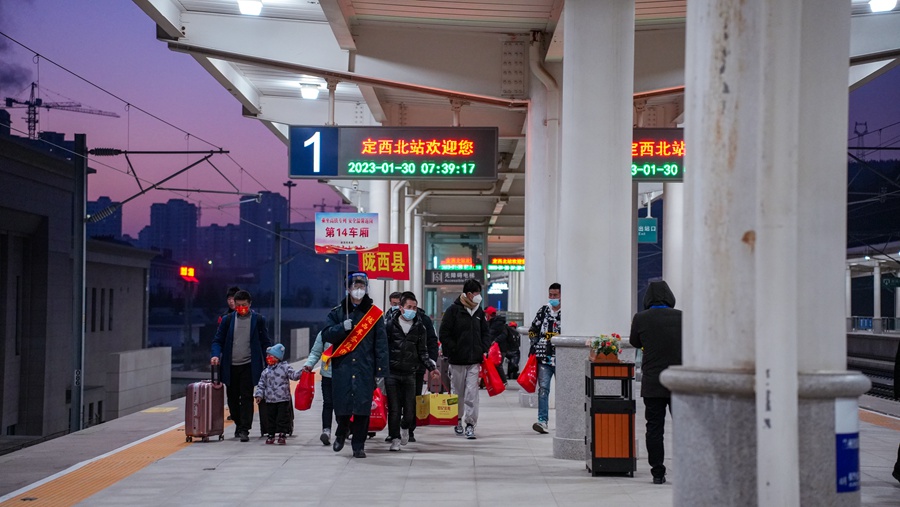人民网兰州1月31日电 (记者黄帆)1月30日8时13分,531名甘肃定西籍务工人员搭乘G1904次列车从定西北高铁站出发,奔赴2000多公里外的福建福州,正式开启务工之旅。这也是甘肃省开出的新年首趟高铁务工专列。 为保障此趟高铁务工专列开行,中国铁路兰州局客运部、陇西车务段积极与定西市人社局及相关单位接洽,准确及时获取务工团体旅客出行需求,制定周密的运输组织保障方案,为列车开行提供精准信息。下一步,铁路部门将继续根据企业用工需求,精准对接地方劳务部门,加大合作力度,优质推出“定制化”专列,为返岗务工、学生返程等提供运输保障。