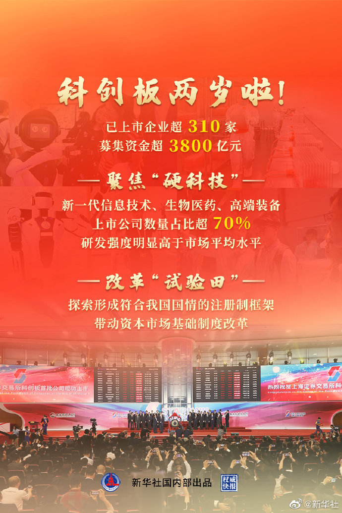 22日,科创板这块资本市场改革的“试验田”迎来两岁生日。两年前,带着各方的盼望和期待,中国资本市场迎来这一全新板块。两年来,科创板以更加包容的姿态迎来300多家上市企业,更在“试验田”作出诸多改革探索,为全市场注册制摸索经验。点燃中国经济的创新引擎,需要用好市场资源、激发市场活力。未来,继续推动科技创新与资本要素良性互动,科创板乘风破浪的征程值得期待。(记者刘慧、姚均芳;海报设计杨秩群)