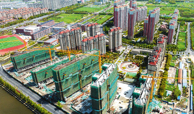 王 琪作(新华社发) 近年来,江苏省海安市不断提升保障性住房建设品质,改善居民住房条件,让更多群众早日实现安居梦。 图为近日,海安高新区城南花苑5期保障性住房项目正在加紧施工。