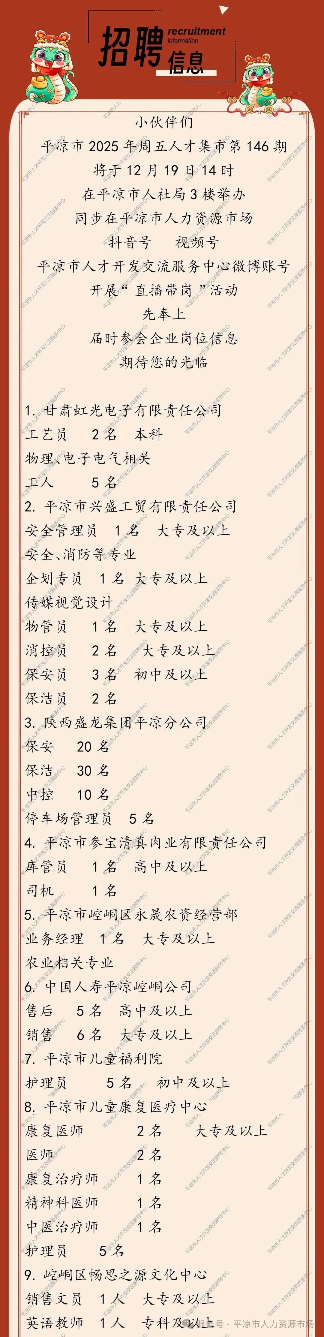 发布时间:2025-12-18 来源:平凉市人力资源市场 作者:佚名 网络编辑:平凉市人力资源市场 浏览次数:235 次