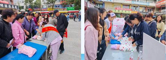 技能体验营:手把手教学,实用技能“家门口”掌握。“技能体验营”将课堂搬到居民“家门口”,月嫂老师现场演示母婴护理小技巧,在老师的指导下,居民们纷纷主动参与模拟练习,相互交流心得,现场的氛围浓厚。一位大姐难掩兴奋:“一直想从事月嫂行业,这次终于有机会亲身体验了!”技能体验让政策走出纸面,化作居民看得见、摸得着、学得会的亲身实践操作,让居民对自己的就业方向有了明确认知。