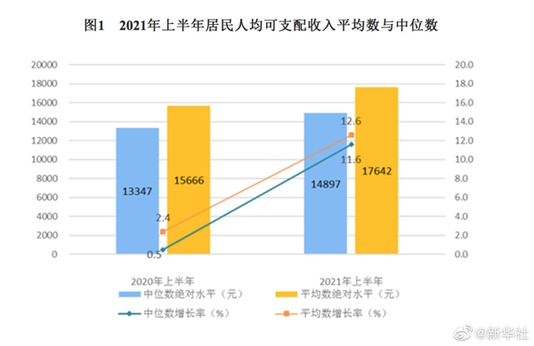 国家统计局15日发布数据,上半年,全国居民人均可支配收入17642元,比上年同期名义增长12.6%,扣除价格因素,实际增长12.0%,增幅较高,主要是受去年上半年低基数影响;比2019年上半年增长15.4%,两年平均增长7.4%,扣除价格因素,两年平均实际增长5.2%,居民收入增长与经济增长基本同步。(记者魏玉坤、邹多为,图片来源:国家统计局)